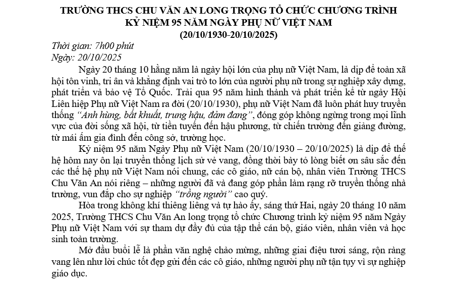 Nguồn tin: Trường THCS Chu Văn An Phường Cẩm Phả, tỉnh Quảng Ninh: